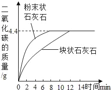 (2)若將25g樣品平均分成兩份,分別加工成塊狀和粉末狀,將兩份樣品分別放入錐形瓶中,同時加入相同體積,相同濃度的足量稀鹽酸充分反應,請在圖象上畫出塊狀樣品與稀鹽酸反應放出CO2的曲線示意圖。_____