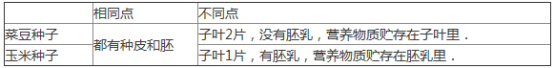 (4)玉米種子和菜豆種子結(jié)構(gòu)的異同點(diǎn):