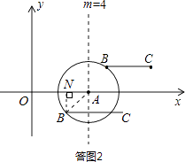 (2)解:如答圖2所示,當點B落在⊙A上時,m的取值范圍為2≤m≤6: