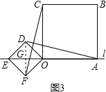 (2)他將正方形ODEF繞O點逆時針旋轉,使點E旋轉至直線l上,如圖3,請你求出CF的長.