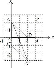 【解析】(1)根據平面直角坐標系寫出即可;(2)根據長方形的面積求出被分成的兩部分的長,然后求出OD的長度,即可得到點D的坐標;(3)根據網格結構找出點C、D的對應點C′、D′的位置,然后順次連接即可,求出CC′的長度以及點D′到CC′的距離然后利用三角形的面積公式列式計算即可得解.