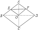 根據菱形性質得出AC⊥BD,AC平分∠BAD,求出∠ABO=30°,求出AO,BO、DO,根據折疊得出EF⊥AC,EF平分AO,推出EF∥BD,推出,EF為△ABD的中位線,根據三角形中位線定理求出即可.