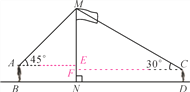 【題目】如圖,某數(shù)學(xué)興趣小組在活動(dòng)課上測(cè)量學(xué)校旗桿高度.已知小明的眼睛與地面的距離(AB)是1.7 m,看旗桿頂部M的仰角為45°;小紅的眼睛與地面的距離(CD)是1.5 m,看旗桿頂部M的仰角為30°.兩人相距30米且位于旗桿兩側(cè)(點(diǎn)B,N,D在同一條直線上).求旗桿MN的高度.(參考數(shù)據(jù):
