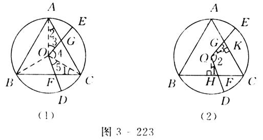 如圖3-218(1)所示,圓內接△ABC中,AB=BC=CA,OD,OE為⊙O的半徑,OD⊥BC于點F,OE⊥AC于點G.