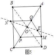 ②如圖5中,當(dāng)直線ON經(jīng)過QM的中點(diǎn)時(shí),直線ON將PMQN的面積分成1:3的兩部分,
