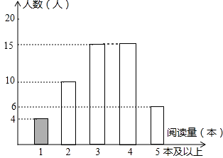 (2)解:閱讀量為4本的人數為:50﹣4﹣10﹣15﹣6=15(人),補全條形統計圖如圖: