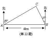 從A測得燈塔C在北偏東60°的方向,從B測得燈塔C在北偏西27°的方向,求燈