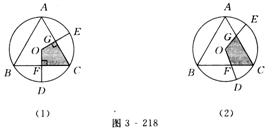 如圖3-218(1)所示,圓內接△ABC中,AB=BC=CA,OD,OE為⊙O的半徑,OD⊥BC于點F,OE⊥AC于點G.