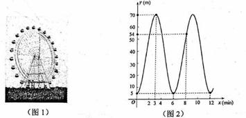 圖1中的摩天輪可抽象成一個圓,圓上一點離地面的高度y(m)與旋轉時間x(min)之間的關系如圖2所示21世紀教育網版權所有