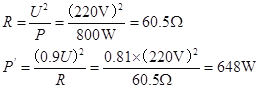 (2)發電機對家里“220 V 800 W”的電飯鍋供電,實測家中電壓約為額定電壓的0.9倍,電飯鍋煮飯時的實際功率約為多少瓦?