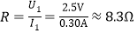 (4)燈在額定電壓2.5V正常發(fā)光,根據(jù)表中第一次實驗數(shù)據(jù),由歐姆定律,燈正常發(fā)光時的電阻為:
