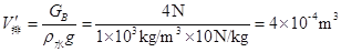 ,V露=VB-V排’=1×10-3m3-4×10-4m3=6×10-4m3,液面下降