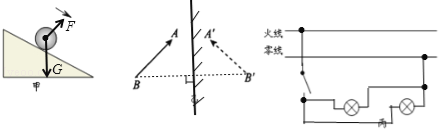 (1)如圖甲所示,小球沿固定斜面自由滾下.畫出小球所受重力和支持力的示意圖.