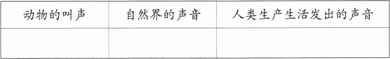 | 動物的叫聲 | 自然界的聲音 | 人類生產生活發出的聲音 |