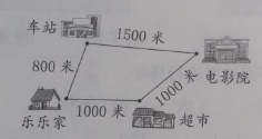 (1)樂樂從家出發,經過車站到電影院,一共要走多少米?