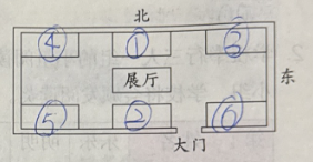 答案:西北方向為④,北面為①,東北方向為③,西南方向為⑥,南面為②,東南方向為⑤