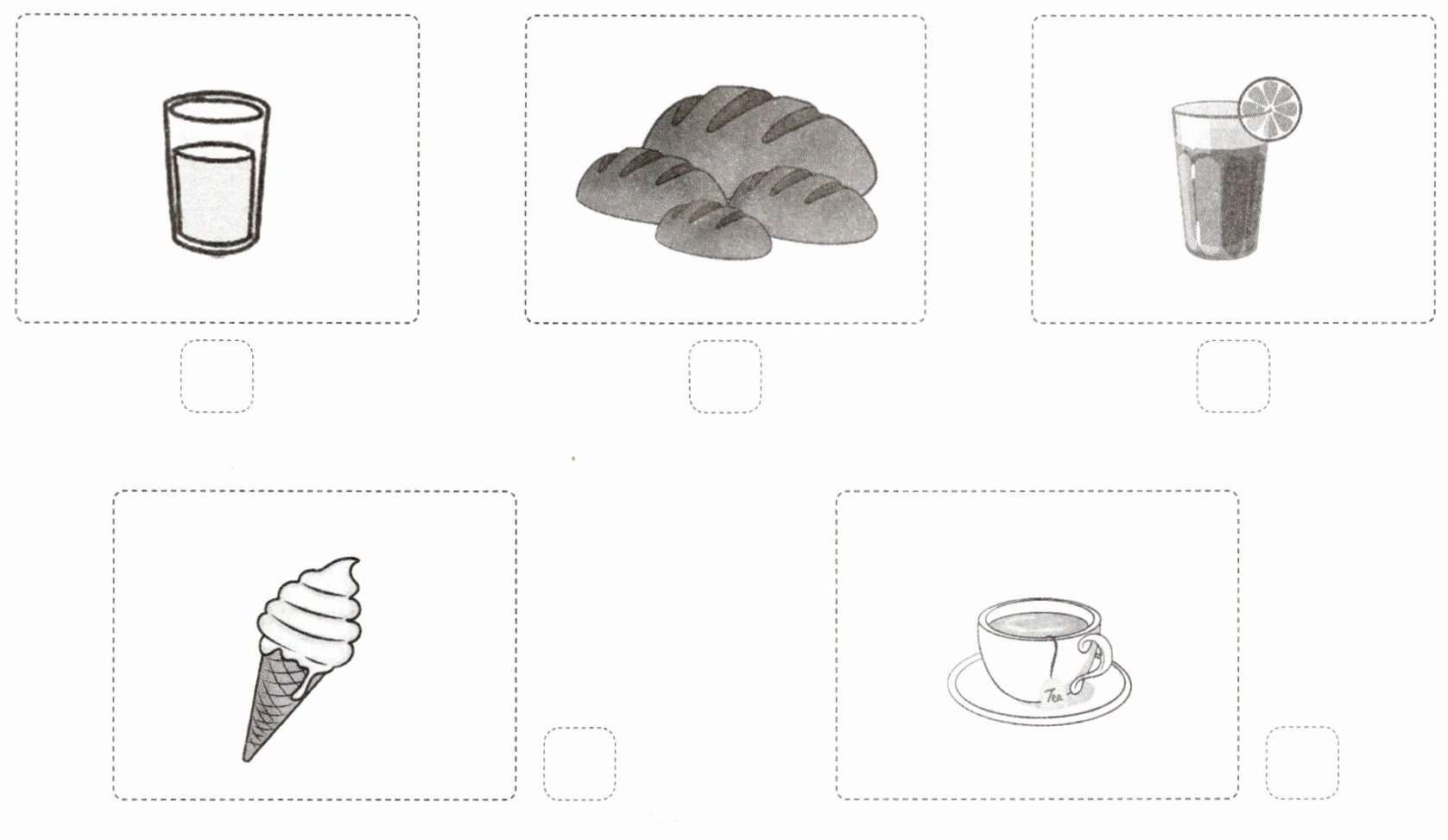 一、Listen and number. 周末,同學(xué)們?cè)谶M(jìn)行下午茶活動(dòng)。根據(jù)所聽(tīng)內(nèi)容,給圖片排序。
