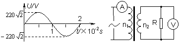 按圖示方式連接,已知變壓器原副線圈的匝數比為n1∶n2 = 10∶1,電阻R = 11Ω,原線圈兩端輸入電壓U隨時間變化的圖象如圖所示,下列說法中正確的是