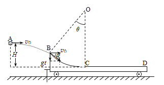 【題目】如圖所示,一質量M=4kg的小車靜置于光滑水平地面上,左側用固定在地面上的銷釘擋住。小車上表面由光滑圓弧軌道BC和水平粗糙軌道CD組成,BC與CD相切于C, BC所對圓心角θ=37°,CD長L=3m。質量m=1kg的小物塊從某一高度處的A點以v0=4m/s的速度水平拋出,恰好沿切線方向自B點進入圓弧軌道,滑到D點時剛好與小車達到共同速度v=1.2m/s。取g=10m/s2,sin37°=0.6,忽略空氣阻力。