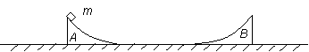 如圖所示兩個質量分別為M1、M2的劈A、B,高度相同。放在光滑水平面上,A、B的上表面為光滑曲面,曲面末端與地面相切。有一質量為m的物塊(可視為質點)自劈頂端自由下滑。劈頂端到地面距離h=0.06m,劈A與物塊的質量比M1/m =5。